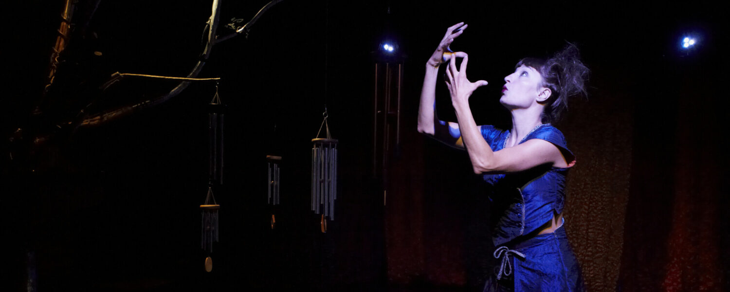 Avec Les Oreilles en Cœur, Mathilde Lechat poursuit son travail d’écriture d’une partition solo pour le corps et la voix, avec l’ambition de composer une musique sans frontières esthétiques, librement inspirée et ancrée dans l’imaginaire. Elle va à la rencontre des tout-petits et des plus grands dans un espace d’écoute sensible et curieuse, avec le désir de laisser voyager les pensées, l’esprit, de voir les visages s’animer et les yeux scintiller, de sentir les cœurs vibrer.